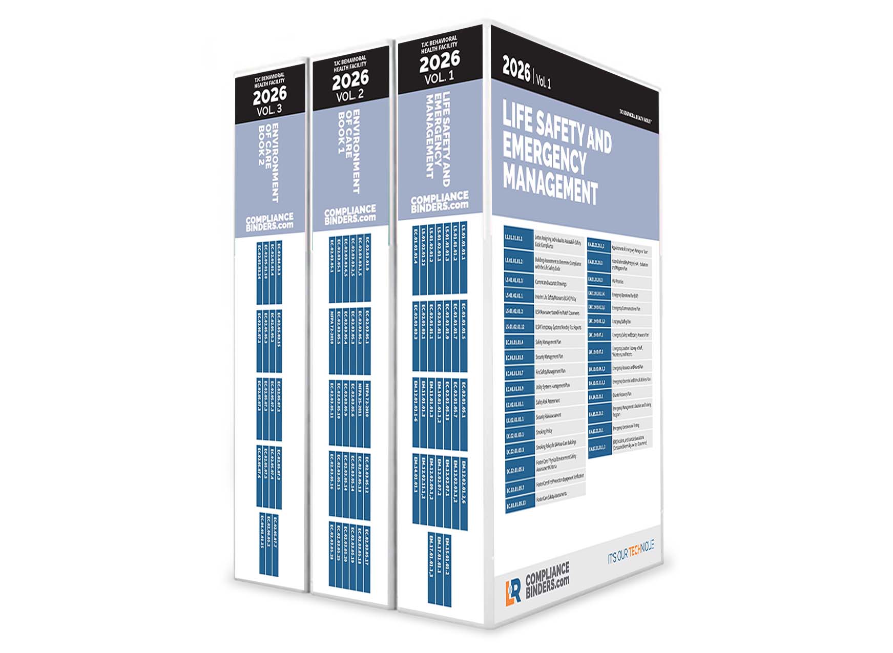 Our EZ packs provide the recommended binder sizes based on the typical documentation requirements for similarly sized facilities around the country.